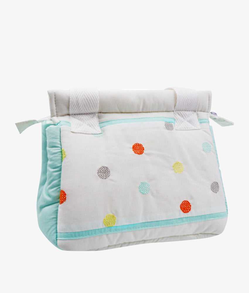 Our Baby Diaper Bag s the perfect companion for mums on the go, perfect for everyday use and light outings with your little one. This product features two side pockets and dividers inside to organize and carry those essentials you need, when you travel with your baby. Made from 100% cotton cover, and lined with easy to clean material for greater convenience. Â