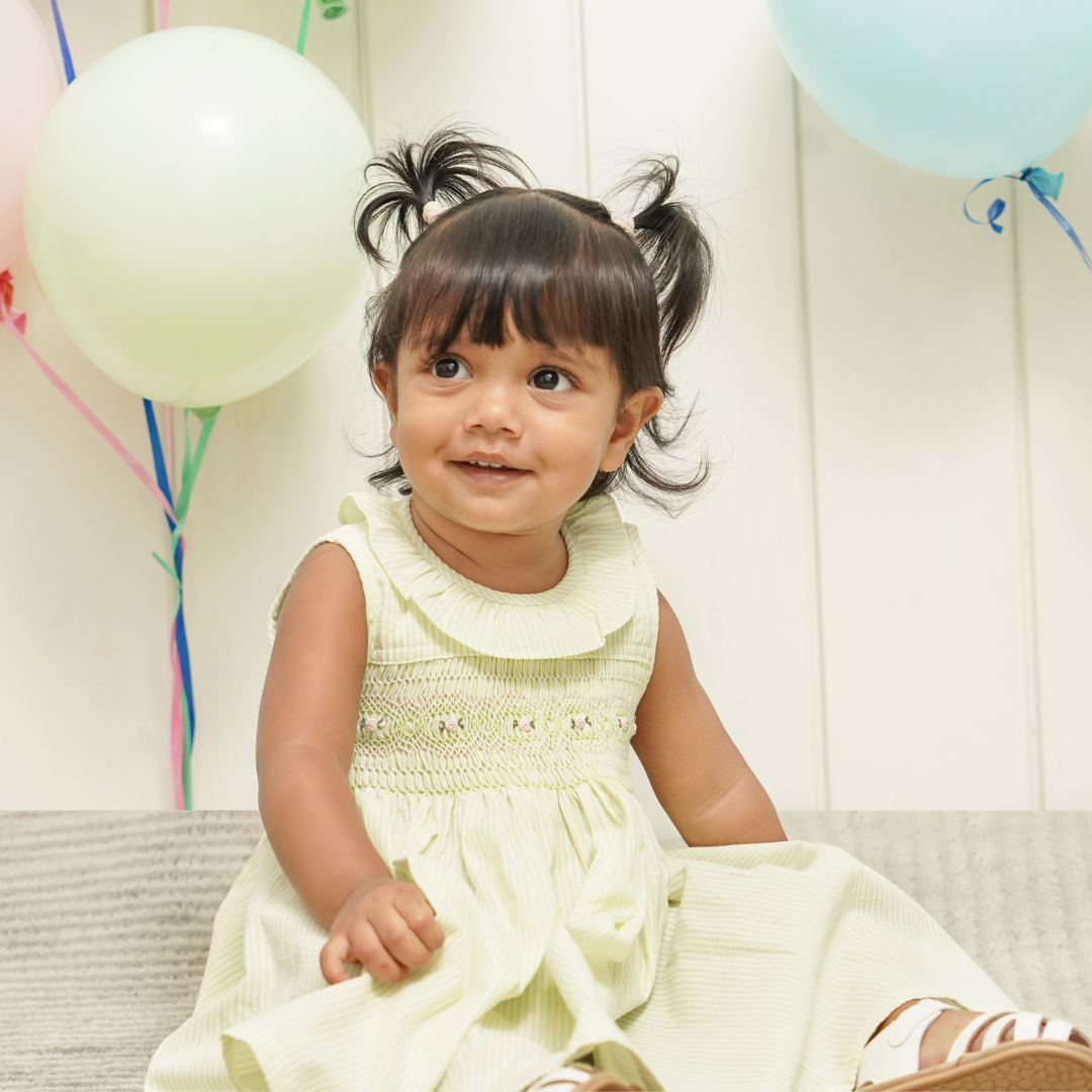 Dress your little one in the Spring Leaf Smocked Girls Dress, perfect for school occasion parties. Its charming smocked detail adds a touch of sweetness, while the comfortable fabric lets her play and twirl with ease. Bright and joyful, this dress ensures she stands out with a playful, timeless style at any celebration.