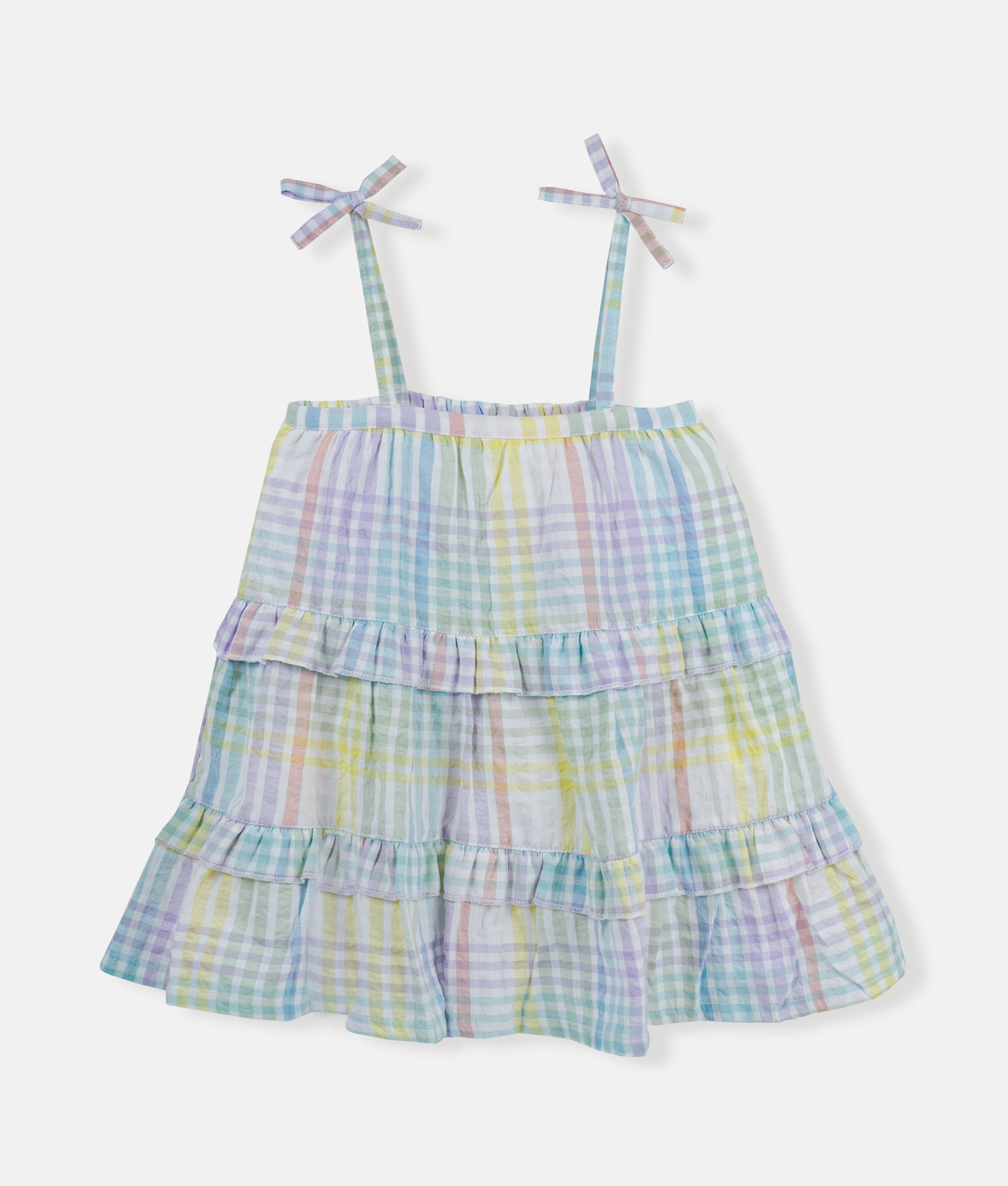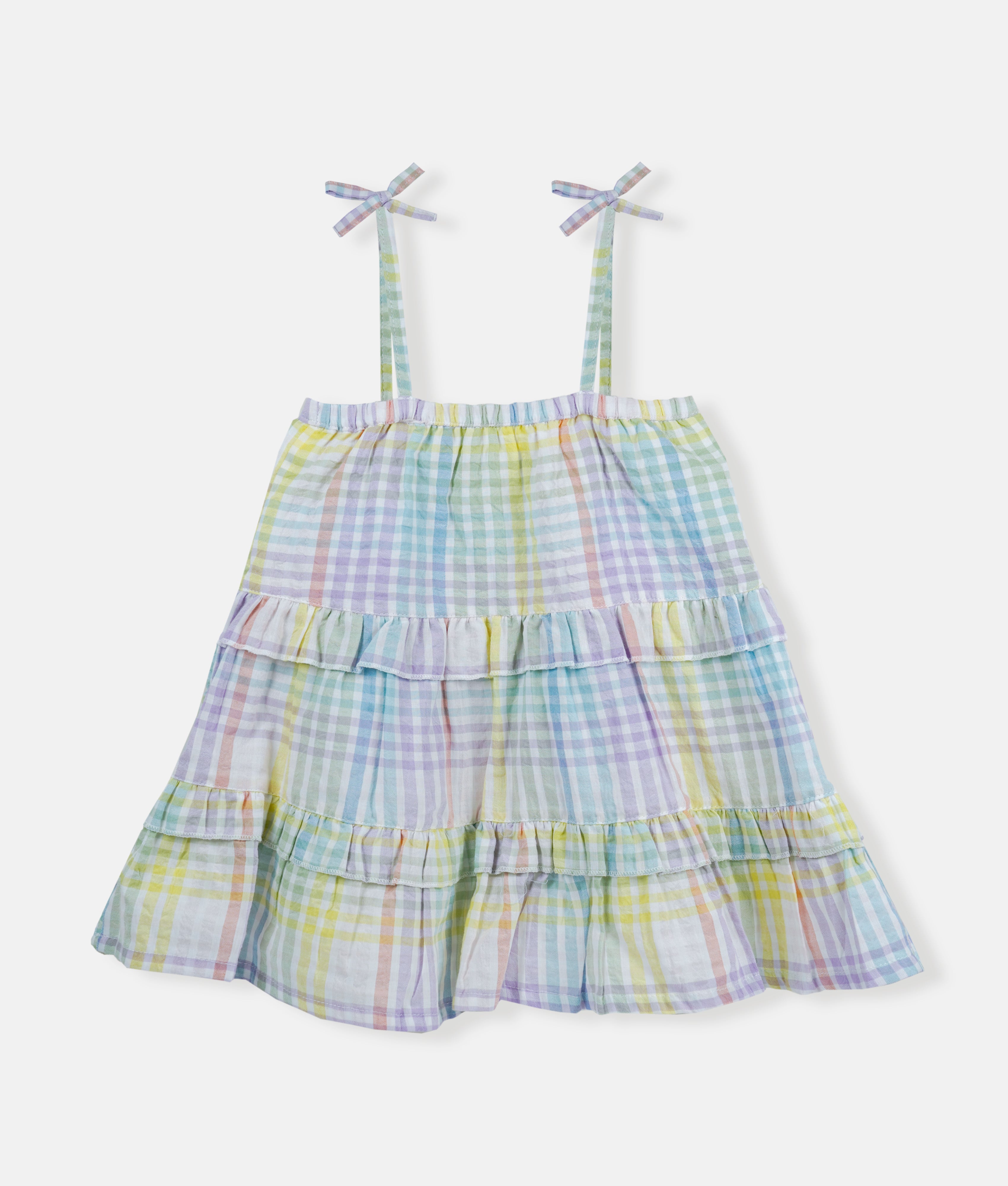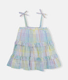 Pastel Rainbow Checks Strap Girls Dress